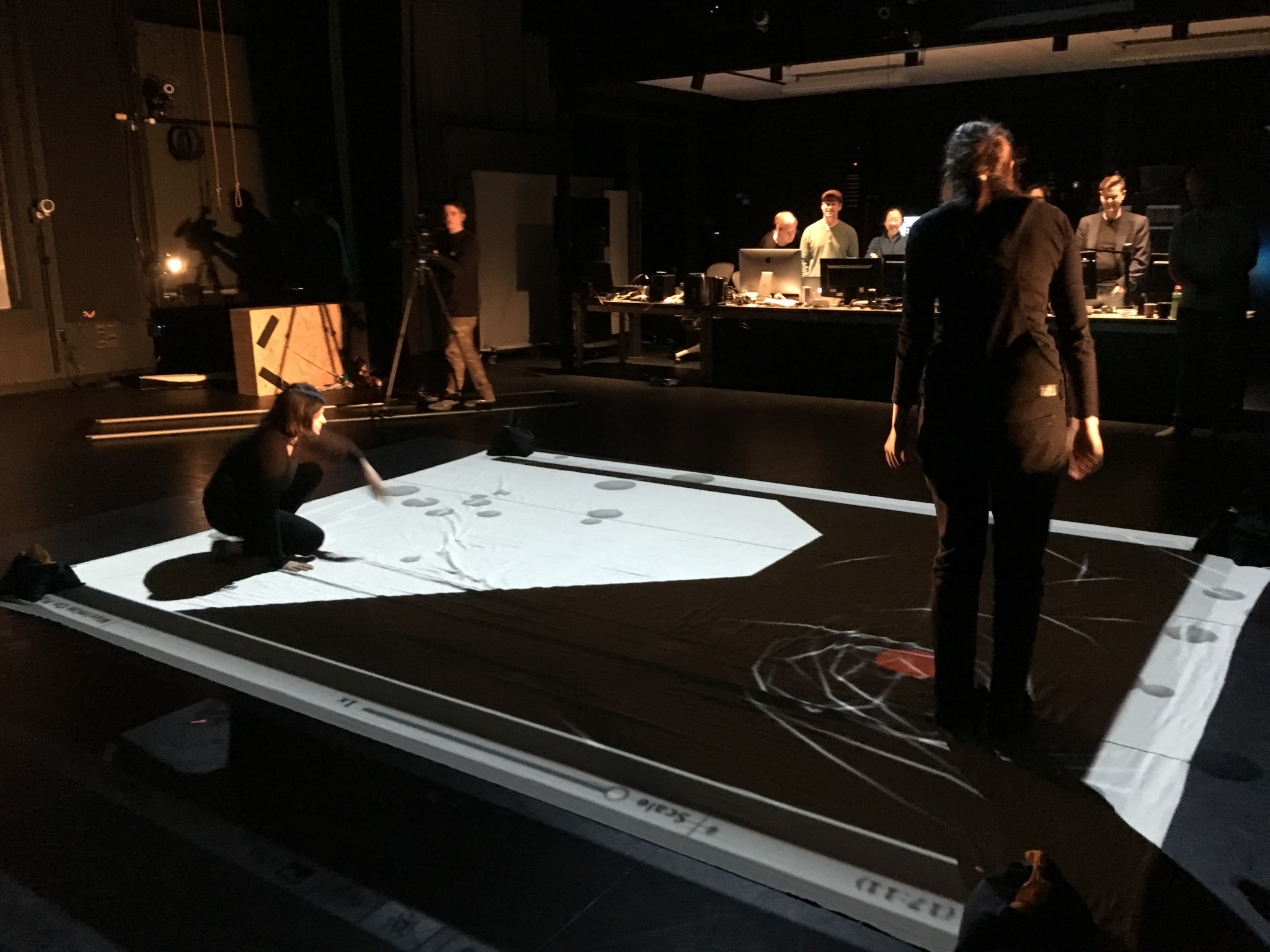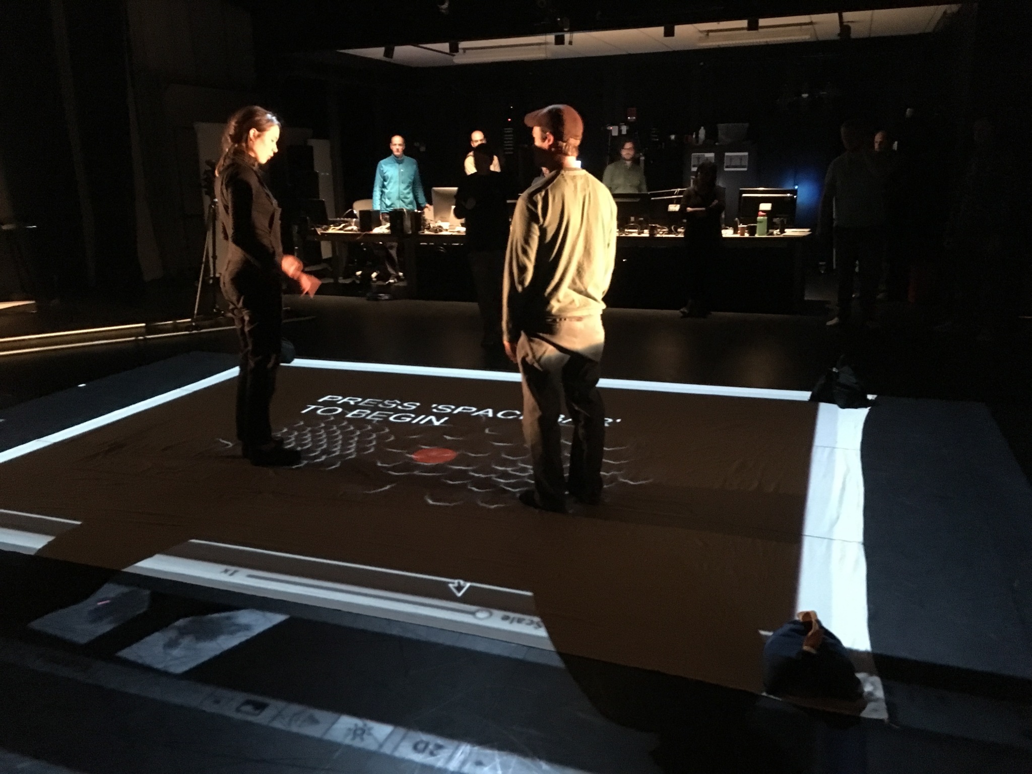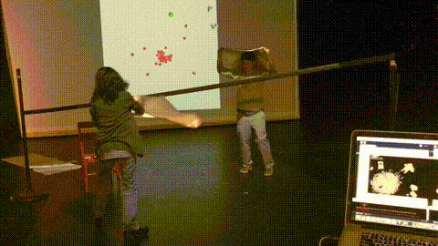 Physical Scroller By coupling a depth sensor with a top-mounted projector, this cooperative multiplayer game requires physical and verbal coordination to successfully navigate hazards in this life-size vertical scroller. The goal of the game is simple: players navigate the red ball through a field of vertically scrolling hazards until reaching the end of the level. A depth sensor tracks the median position of all player ‘blobs’ and places the red ball there. There are options however! Because the depth sensor only registers at a specific altitude around shoulder-height, players can duck beneath it, effectively removing themselves from play. The result is a ‘pass’ to the other player(s). Additionally, spreading your arms out and making yourself a ‘larger blob’ increases your area of influence and biases the red ball in your direction - this helps tremendously when finessing the red ball around obstacles. Physical Scroller plays great with 2-4 players, but can easily accomodate 1-10.